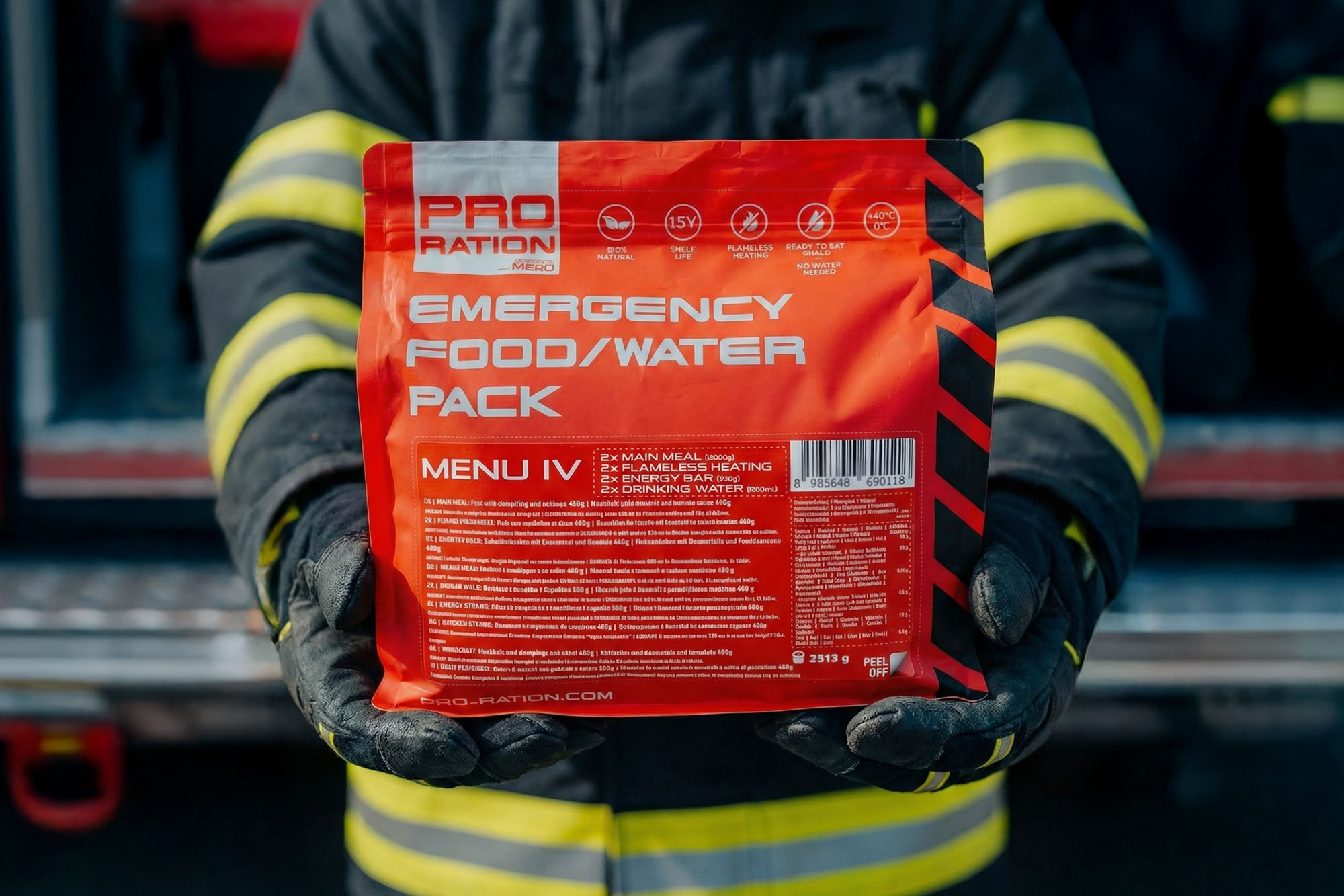 The Emergency Food/Water Pack is trusted by firefighters and rescue teams — and now it can be part of your gear too. Thanks to its long shelf life, there's no need for constant rotation. You can store it and forget about it — until the moment you need it most. And when that moment comes, you’ll be able to count on it.